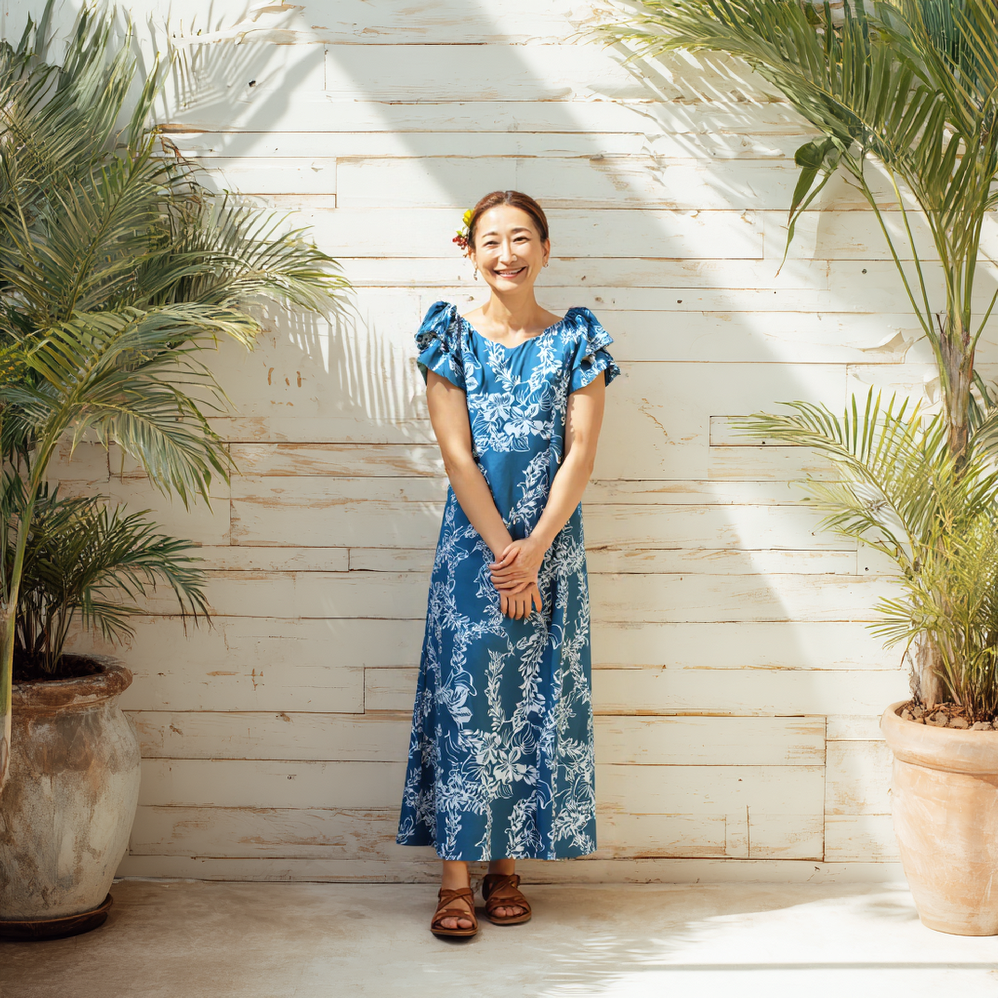 ハワイの老舗ブランドならではの気品と優雅さをまとい、挙式参列や特別な日の装いにもぴったりの一着です。