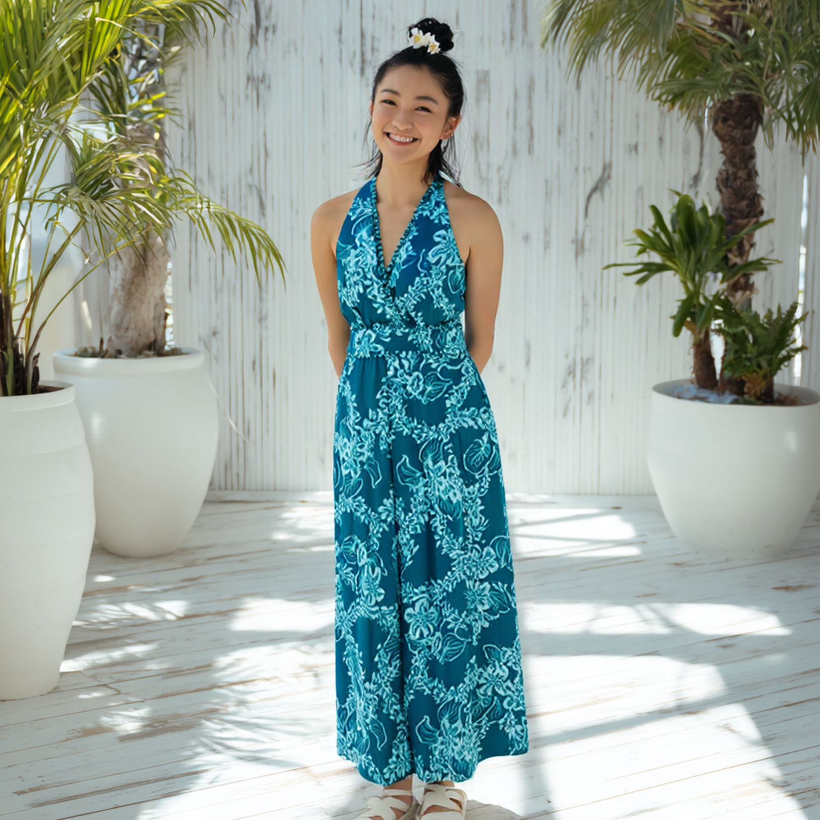 お揃いでアロハシャツもございます。また同じ色、生地でほかのデザインのドレスもあるので、こちらの柄、色が気に入ったからは他のデザインも是非ご覧くださいませ。